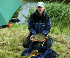 I don’t think I have ever fished in such torrential rain! A 4:30am start didn’t deter Trev Sturge, Ian Darler, John Pope or me, but who could blame those who woke up, looked out at the weather, and put the bed covers over their heads! The sensible anglers, Mick Curtis and Jay Johnson, turned up a bit later on, but all of a sudden the sky got grey again and back came the rain. Job done, though we did get some good bream and tench, with worm bring the best bait. Unfortunately, two of us lost carp. I am not certain who were the most surprised, the anglers or the fish!